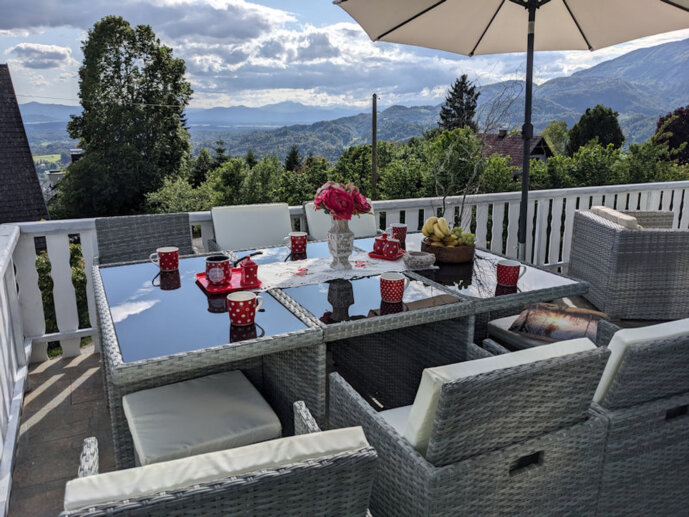 The self catering chalet is in a tranquil hilltop location above the delightful medieval town of Kamnik. There is plenty of garden and outdoor space to enjoy the beautiful alpine setting of the chalet and there are several very enjoyable walks starting directly from the chalet taking in forests, alpine meadows, the quaint local villages, spectacular views of the mountains and overlooking the whole of the Ljubljana basin.