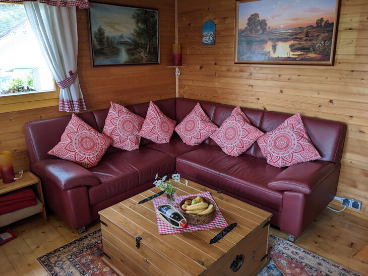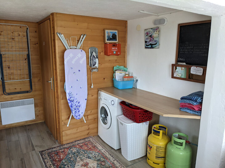 The lounge area has a comfortable sofa seating up to 6 people, a flat screen TV, DVD's, Netflix and a log burning stove for those cosy evenings in.